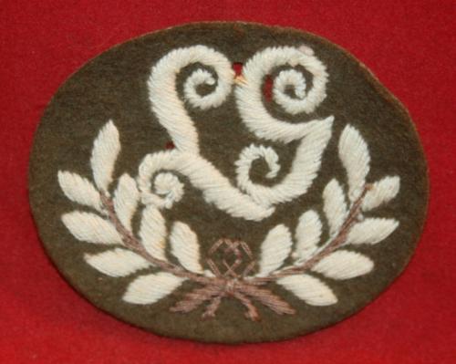 British Army: Light Machine- Gun Marksman Insignia Patch. Thread impressions along edge. Worn, but in very good condition, some moth nibbles.