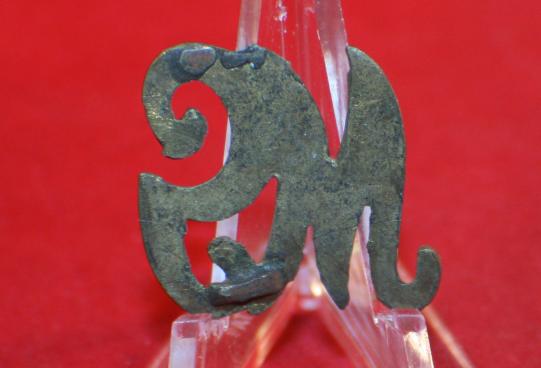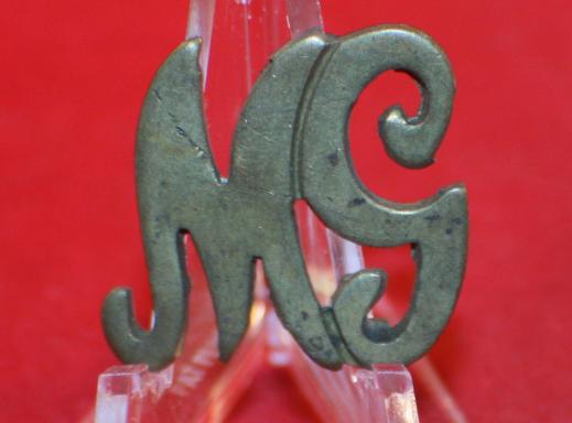 British Army: Machine Gun Shoulder Title / Trade Badge MG. Brass metal. With lug fasteners removed.