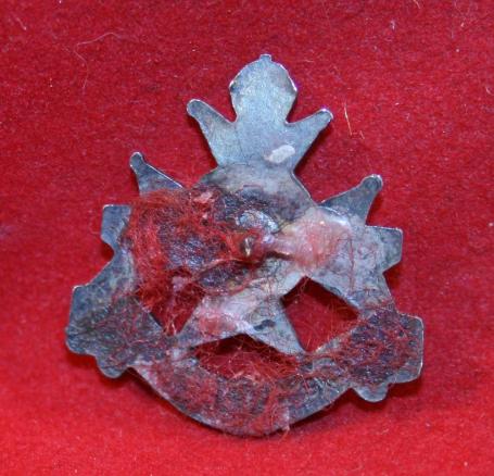 British Army: Notts & Derby Sweetheart Pin. Silver base with blue, enamel (not hallmarked). No fastener, glue & backing residue on back. 21mm tall.