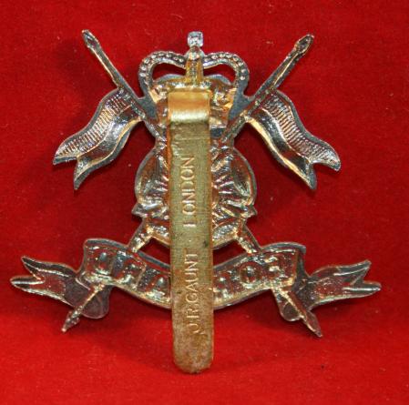 British Army: Queens Own Yorkshire Yeomanry Cap Badge. White metal. Slider fastener. Worn 1956-1959.