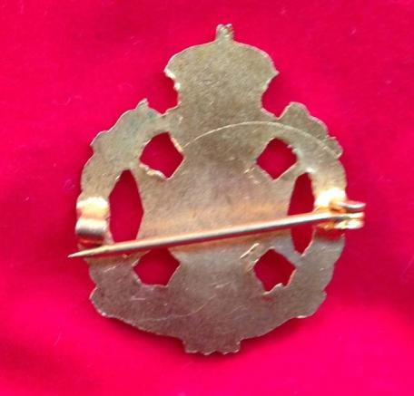 The RIFLE BRIGADE, Sweetheart Pin. Dull gold coated finish showing some shiny areas. Pin back, 26.90mm wide by 32.21mm high. Heavy well made.