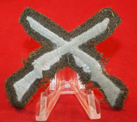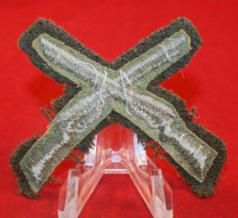 British / Canadian Army, Marksmen Trade Badge - Crossed Rifles. Blancoed. WW2 issue. Previously worn condition. 75mm wide, 65mm tall.