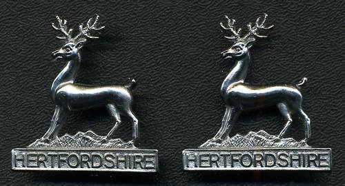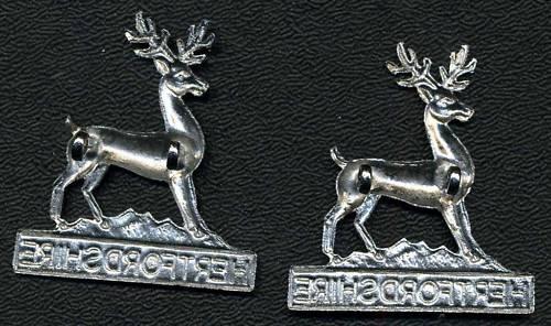 OBSOLETE, British, HERTFORDSHIRE Police Collar badges. I am calling these collar badges but they are quite large, 42mm wide by 46mm high. With lugs on the back, so could be caps. Both Stags face to the left. Nice.