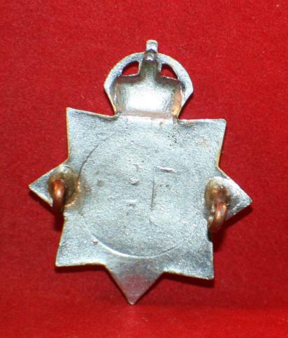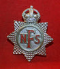 WW2 era, NFS, National Fire Service, cap badge. Dull gray/white coated bronze metal, some slight bronze showing due to wear, Kings Crown, 7 point star with heavy pebbled points and letters N F S, red enamel on fine pebbled circle centre. Lug fasteners. Nice stamping.
