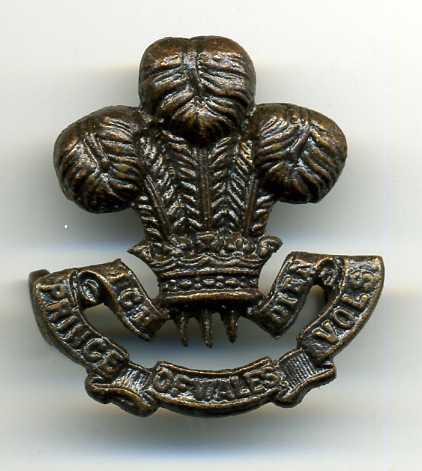British: Prince of Wales Volunteers Collar Badge. Bronze, with lug fasteners.
