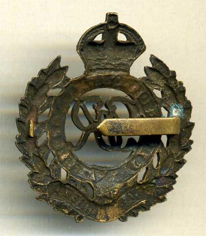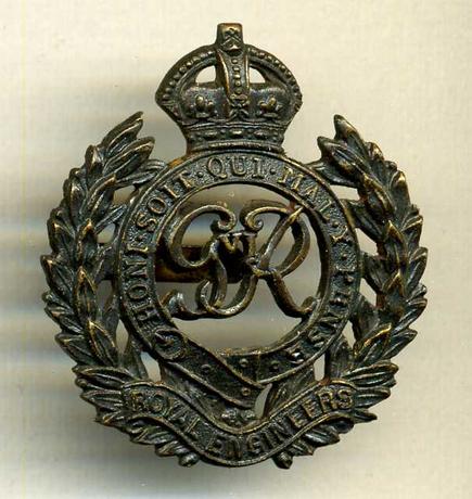 British: Royal Engineers Cap Badge. Darkened Brass. One tang fastener remaining.