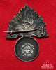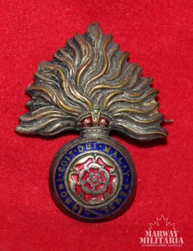 Age toned brass metal with enamels. Pin back. 28mm tall.