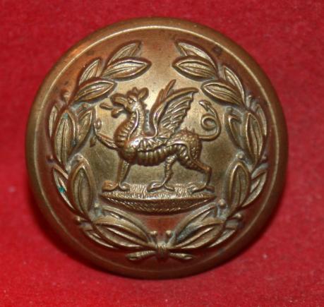 British: South Wales Borderers Uniform Button. Age toned brass metal. Loop on the back. Maker stamped JR GAUNT & SON. 25mm wide.