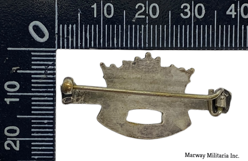 Silver metal, with a pin back. Wear to high points. From some light research, this group would give navy men warm comfort clothing and care after a dip in the water.