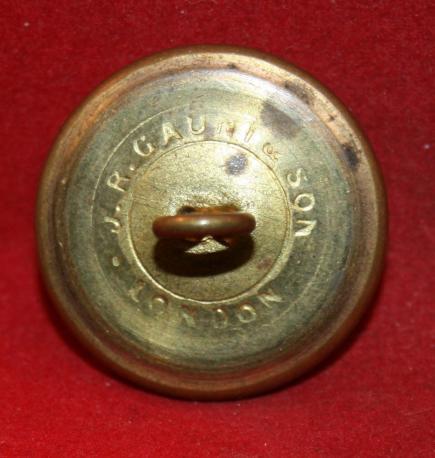 British: Yeoman of the Guard Uniform Button. Age toned brass metal. Loop on the back. Maker stamped JR GAUNT & SON LONDON. 25mm wide.