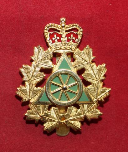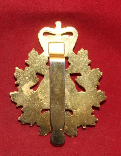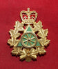 Brass badge with green & red enamels, spinning wheel. Post 1953 issue.