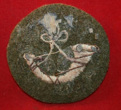 Canadian / British Army: Bugler Cloth Trade Badge. Embroidered. Glue & paper residue on the back. 56mm wide by 56mm wide. Previously worn.