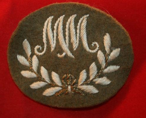 Canadian / British Army: "MM" Mortar Man (Motor Mechanic) Cloth Trade Badge. Embroidered. Glue & paper residue on the back. 62mm by 52mm
