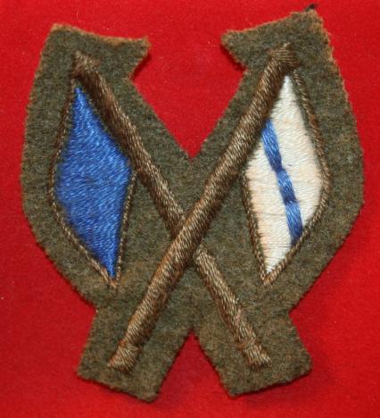 Canadian / British Army: Signaller Cloth Trade Badge. Embroidered. Glue & paper residue on the back. 65mm by 58mm.