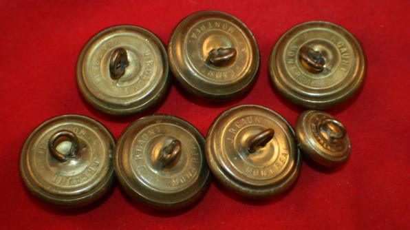 Canadian Corps of Commissionaires Uniform Button Lot. Lot of 7. Brass metal. Loop on the back. 25mm wide, and 17mm wide.