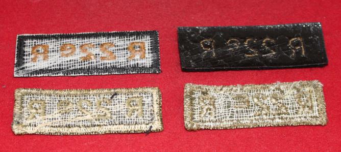 Lot of 4. All, Royal 22nd Regiment, two green on green and two yellow/gold on black, see photo for backing cloths. Nice.
