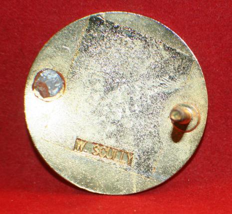 Canadian Issue, Corps of Commissionaires Cap Badge. Brass metal with coloured enamel (spot of damage), screw post fasteners (1 remaining). W SCULLY Maker stamped.