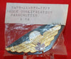 Canadian Forces metal Jump Wing. White enamel Parachute with Red enamel Maple Leaf, on gold wings. Three clutch pin fasteners, gray plastic backing plate. Still in the Sealed plastic bag of issue with Numbers and name.