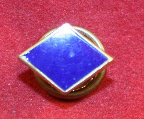 WW2, Canadian, 2nd Corps Veterans Pin. Blue enamel diamond with, excellent condition, outlined in brass, 15.15mm wide by 11.00mm high. Screw post fasteners with nut.