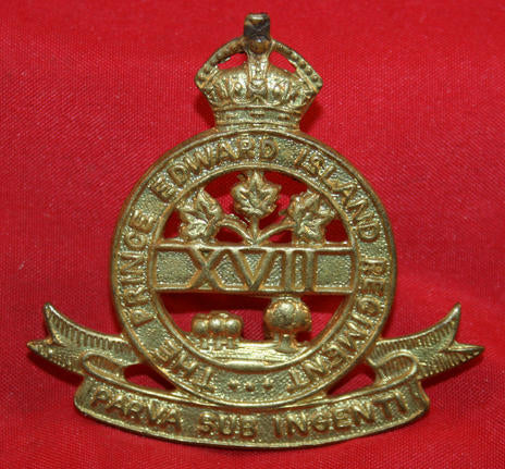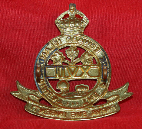 Cap Badge, Prince Edward Island Regiment. Brass, lugs on reverse. 1949 issue.