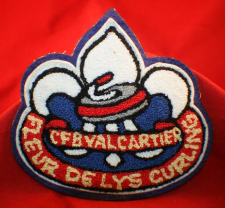 CFB. Canadian Forces Base, VALCARTIER, Fleur De Lys, CURLING Club, jacket crest. Loop thread, colored crest, with Fleur De Lys backing to design, blue felt backing., with dull cloth backing. On back $475 what ever that would be hope its not what they paid for the crest. 6" x 5 3/4" wide. Shows slight age dulling but still nice.