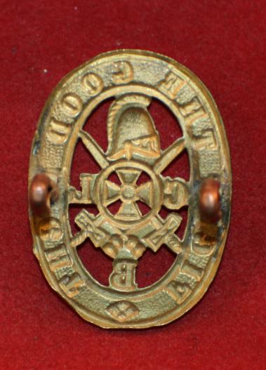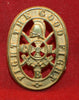 CHURCH LADS BRIGADE, (Church of England), Collar badge. Dull gold plated, lug fasteners, 35.01mm high by 25.57mm wide. Oval shape with words, FIGHT THE GOOD FIGHT * on it with voided Helmet/Crossed Swords/Cross, letter C L B, centre. Gold plating shows some wear to high points but still nice Scarce collar. Mazeas M178C.