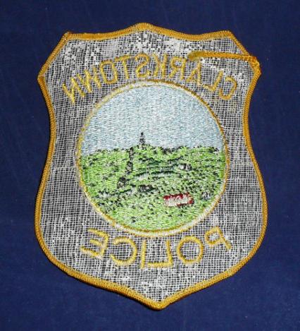Clarkstown, New York Police Shoulder Patch. Embroidered. Not worn condition. Crisp. Approx. 5" tall x 4" wide.