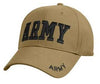 Deluxe Low Profile Insignia Caps features a 100% brushed cotton twill, raised 3-D embroidered insignia on front panel & brims, sandwich bill strap insignia with adjustable hook & loop closure.