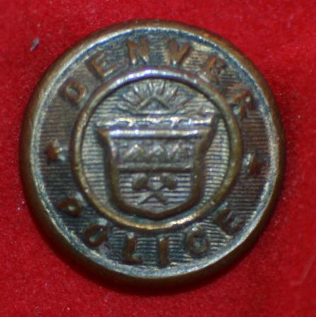 Denver Police Uniform Button - Old Obsolete style / design.Beginning to show age toning to gilt brass metal. Loop on the back. 15mm wide. Maker stamped JR GAUNT & SON INC NEW YORK MADE IN ENGLAND.