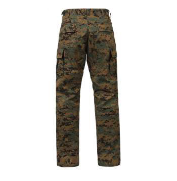 RothcoDigital Woodland Marpat. Rothco's Military Digital Camouflage BDU Pants are made with comfortable, durable poly/cotton twill with a reinforced seat & knees, designed for military and public safety personnel for a long lasting wear. Rothco’s BDU Uniform pants include 6 utility pockets (2 button down back pockets, 2 front slash pockets and 2 cargo pockets). Additional features include an adjustable waist tabs for a secure fit, button fly, drawstring bottoms.