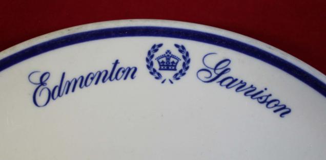 Off white colour with blue regimental crest and blue trim. In very good overall condition, no cracks or crazing. On back Syracuse 69 China Of Canada. 8" wide.Nice piece of China.