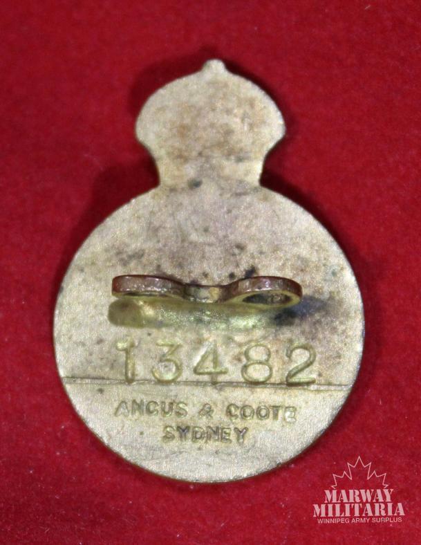 Brass metal with enamels. Pre 1953 Fasteners on back. Numbered 13482, with maker. 30mm tall