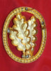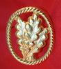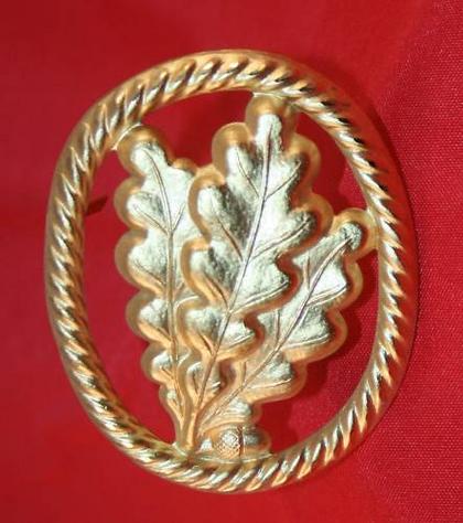 West German Army, GDR Army, Beret Badge Rifleman Jager in Gold, post WW2. In gilt coated brass metal. With 4 tang fasteners on the back. Stamped with a small diamond shape on the back with letter O/C.