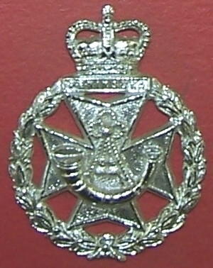 Green Jackets Regiment Cap Badge Staybrite. Slider fastener on reverse. J. R. Gaunt London maker stamped.