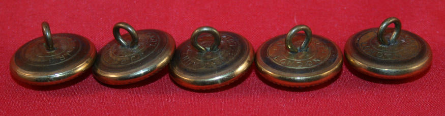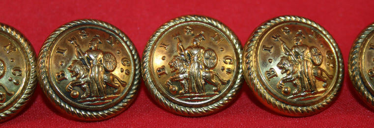 Group of 5, British India Steam Ship Naval Company Uniform Buttons. Brass, with loop on the back. Each button is 16mm wide.Each maker stamped JR GAUNT LONDON.