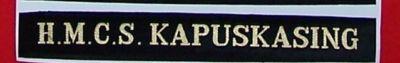 H.M.C.S. KAPUSKASING Naval Cap Tally. Full size ribbon, folded. Untied, shows light wear.