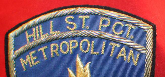Hill St. PCT Metropolitan Police Shoulder Flash / Patch - Gold Wire, OLD. With gold mylar, nice age toning. Previously worn condition. Nice and crisp.