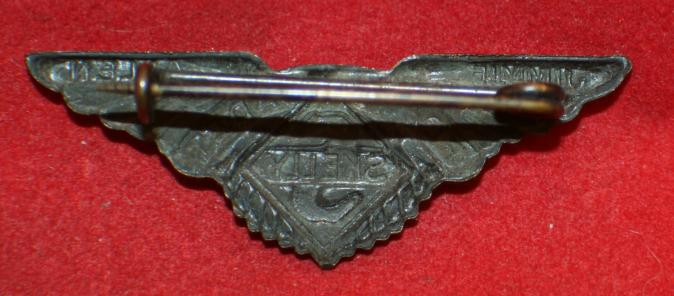 Jimmie ALLEN, FLYING CADET, dark copper/bronze metal, pin back fastener. Marked, JIMMIE ALLEN, SKELLY S (Oil) FLYING CADET. Skelly was the original sponsor of Jimmie Allen, 1933 and went to 1937. Richfield Oil was also a sponsor. Nice stamping and condition.