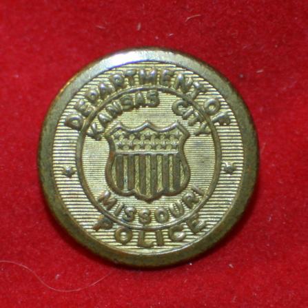 Kansas City Department of Police Uniform Button - Old Obsolete style / design.Beginning to show age toning to gilt brass metal. Loop on the back. 15mm wide. Maker stamped SUPERIOR QUALITY.