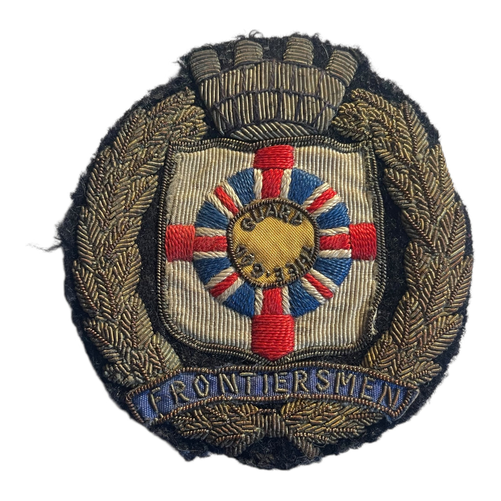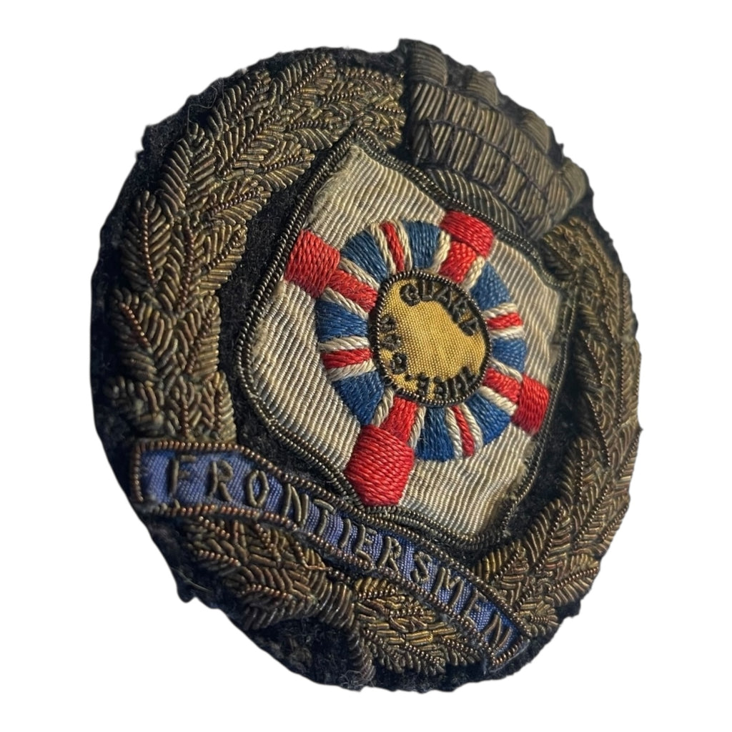Legion of Frontiersmen Gold Wire Jacket Crest. A beautifully age toned gold wire blazer or jacket crest. 3.5 inches tall. Shows some wear to inside shield, that is hardly noticeable. A nice old crest.