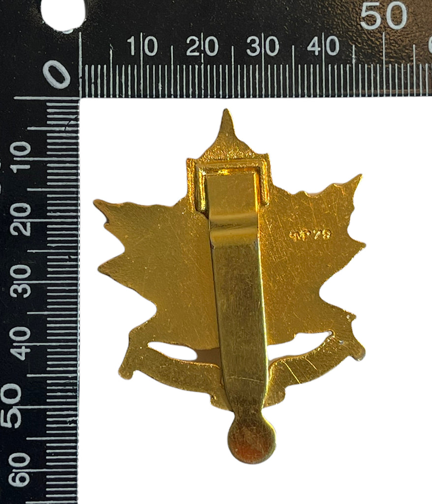 Gilt metal, slider fastener. Maker stamped. Post 1953.