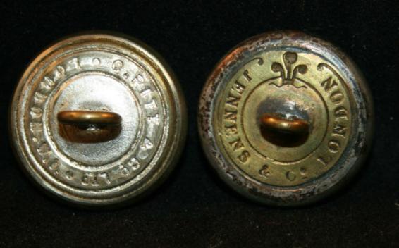 LIGHT INFANTRY REGIMENT. Uniform Button Lot. Lot of 2. RIPLEY 314 type. Both 24mm. 1 - White Metal, PITT maker marked and 1 - bronze metal with traces of silver coating.