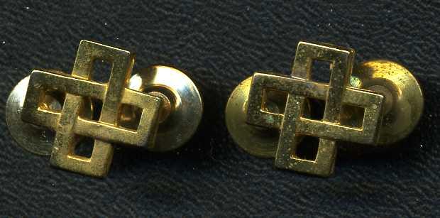 Logistics Branch Collar Badge Pair. Crossed Safety Pin design. Pin fasteners.