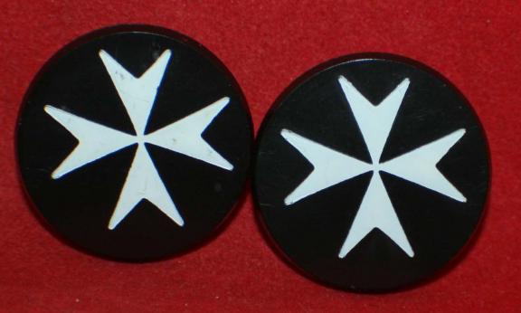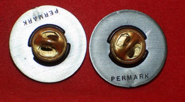 The St John Ambulance Brigade Lot of 2, Uniform Pin / Badge Lot. White pressed onto hard plastic. Maker stamped "PERMARK". 26mm wide. Clutch pin fastener.