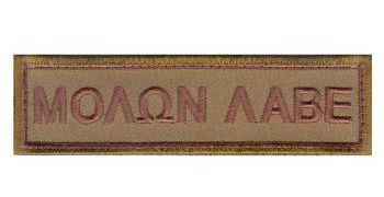 embroidered "Molon Labe" text. The morale patches feature a hook backing
