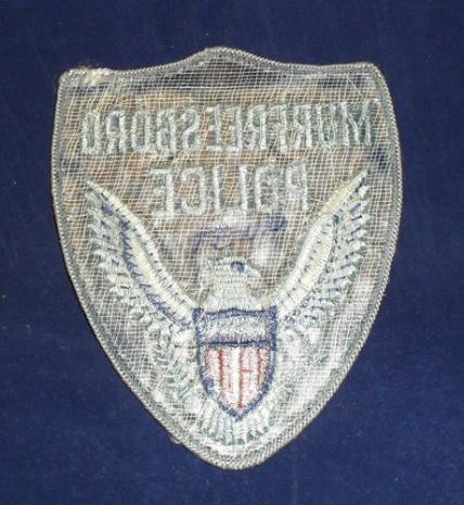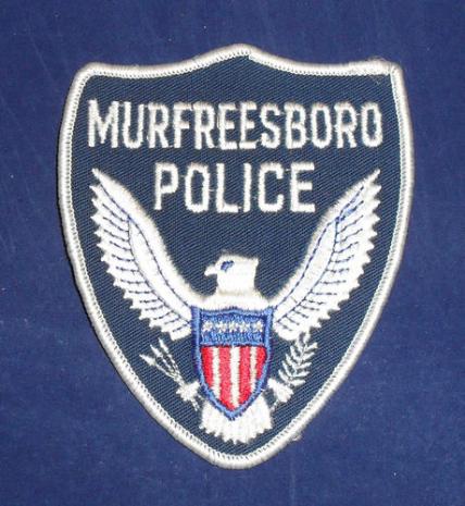Murfreesboro, Tennessee Police Shoulder Patch. Embroidered. Not worn condition. Crisp. Approx. 4 1/4" tall x 3 1/2" wide.