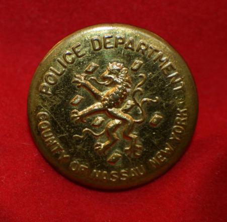 Nassau, New York Police Uniform Button - Old Obsolete style / design.Beginning to show age toning to gilt brass metal. Loop on the back. 26mm wide. Maker stamped SUPERIOR QUALITY.