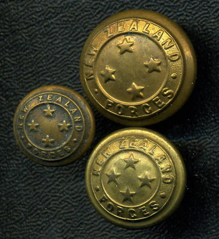 NEW ZEALAND FORCES Uniform Button Lot. Lot of 3. 1-25mm wide, stamped JR GAUNT & SON LTD LONDON. 1-22mm wide, stamped STOKES & SONS. 1-18mm wide, stamped JR GAUNT & SON LTD LONDON. Each with loop on the back.