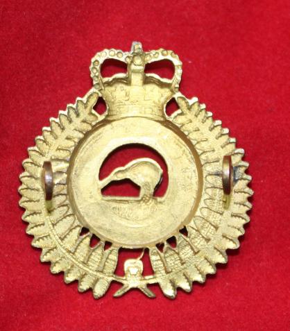 Brass metal with blue enamel. Lug fasteners. Post 1953 issue.