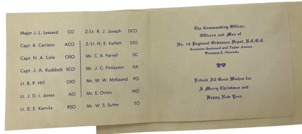 No. 16 Regional Ordnace R.C.O.C. Regiment Christmas Card